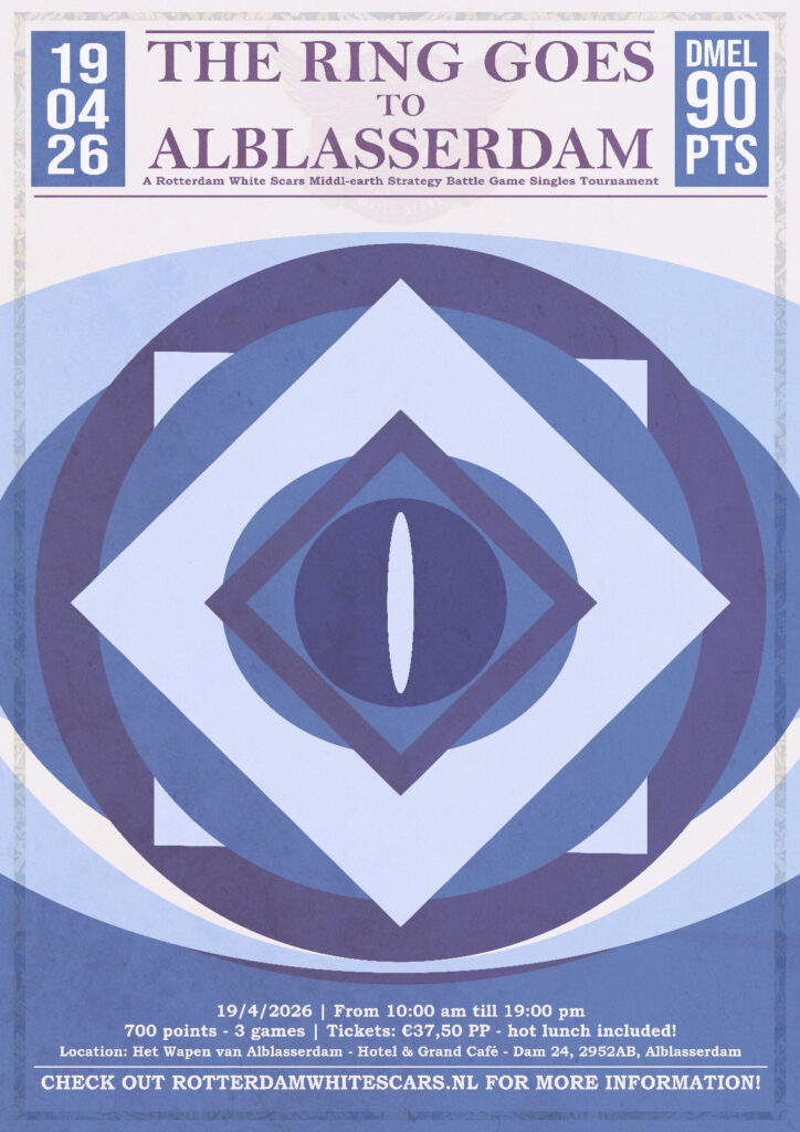 We are very excited to announce that the Rotterdam White Scars will be hosting an Middle-earth SBG – Singles Event.
