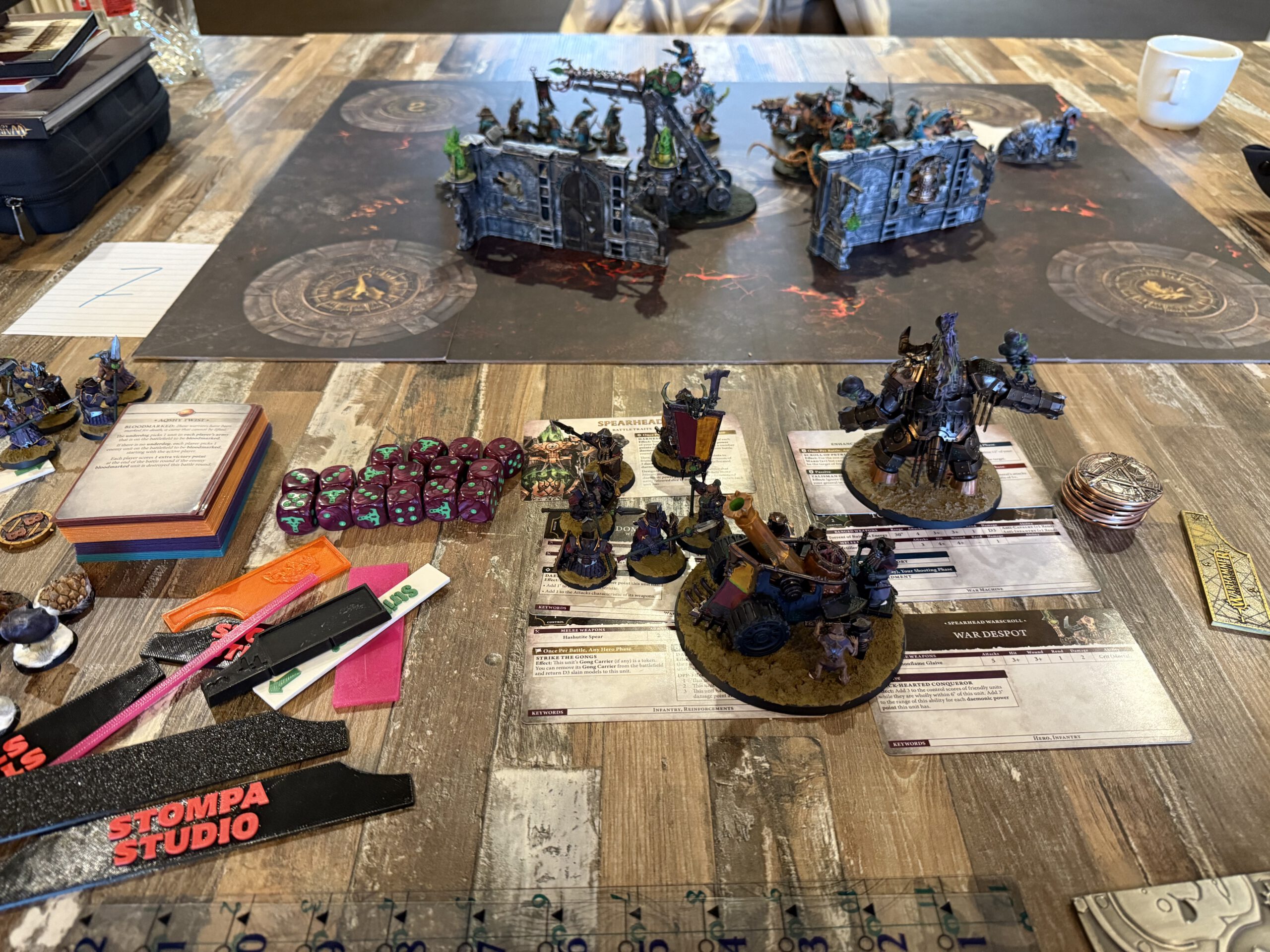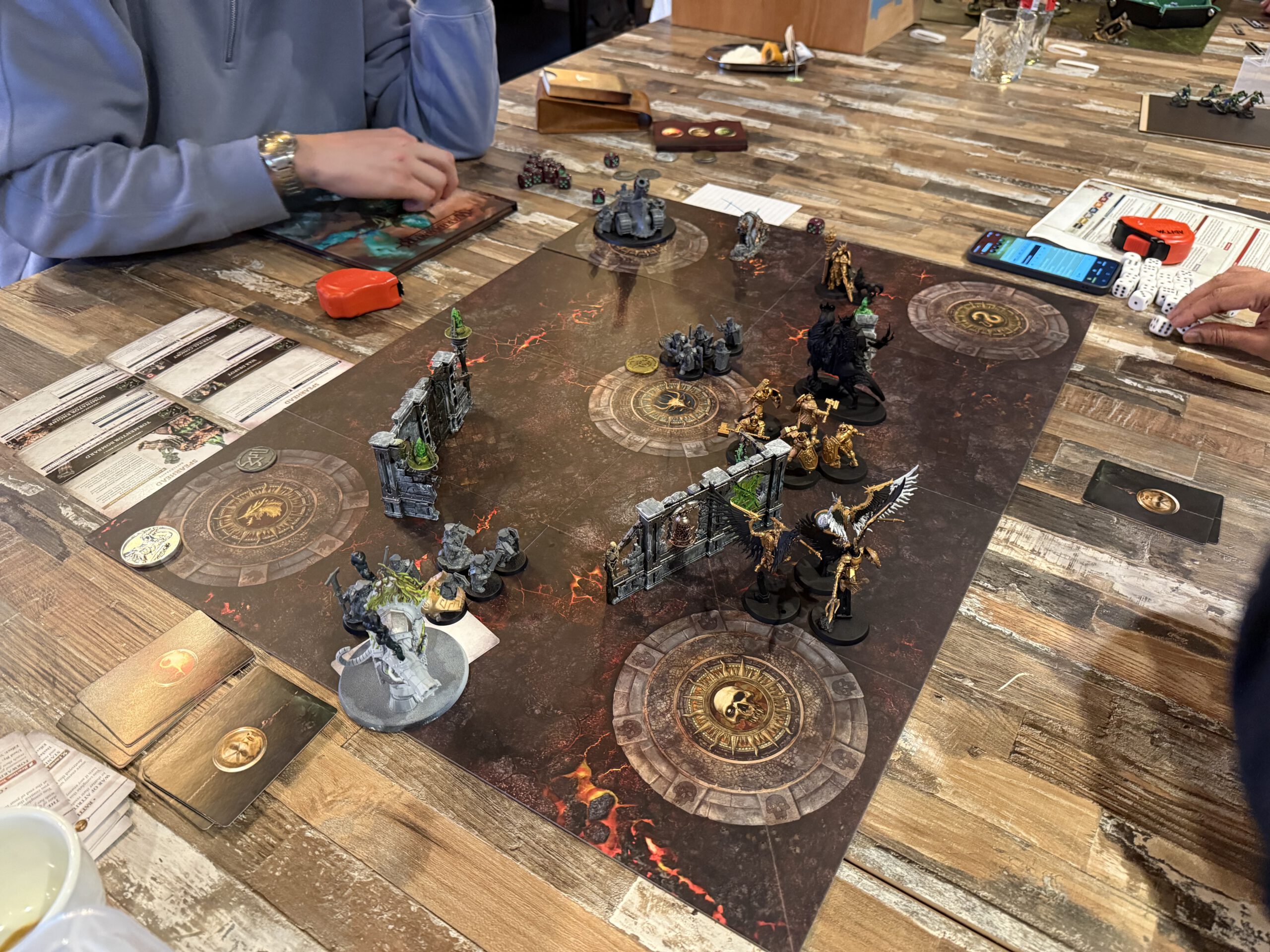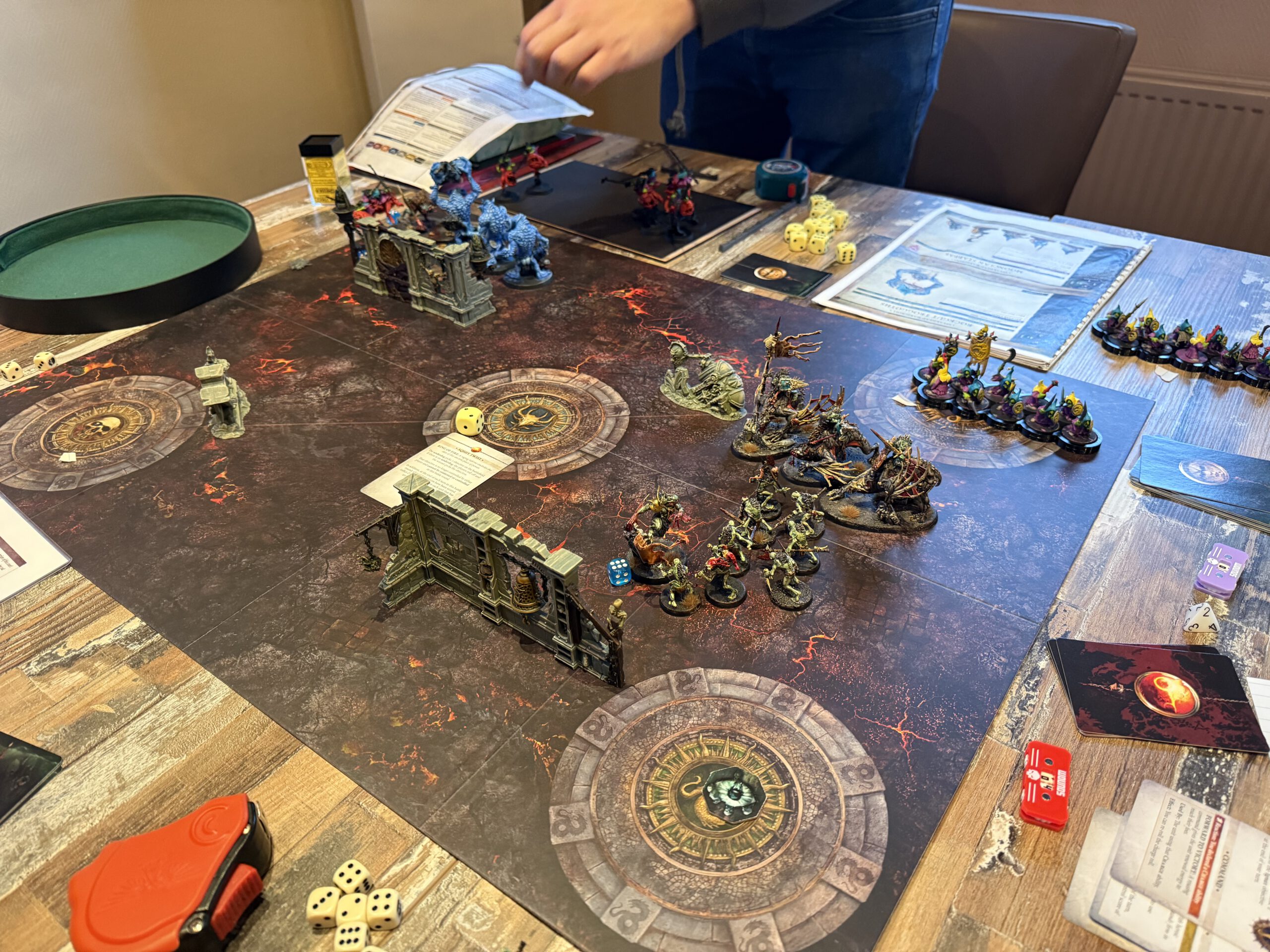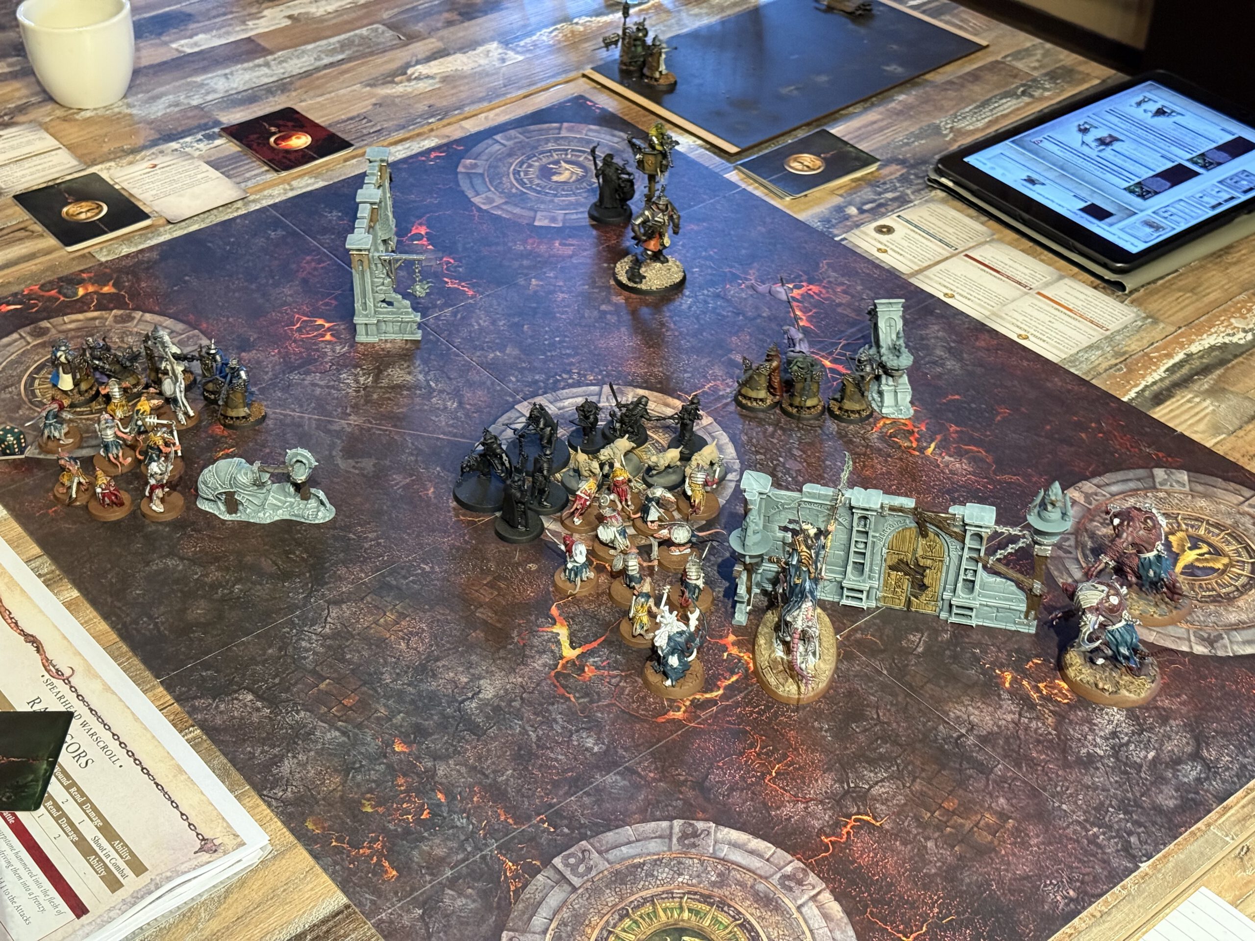 Tithefall, a crossroads of tribute in the Mortal Realms, erupted in flames as twenty spearheads descended to claim, protect, or destroy the tithes. Smoke curled over the streets, fire licked at walls, and the air itself seemed to shiver with anticipation.