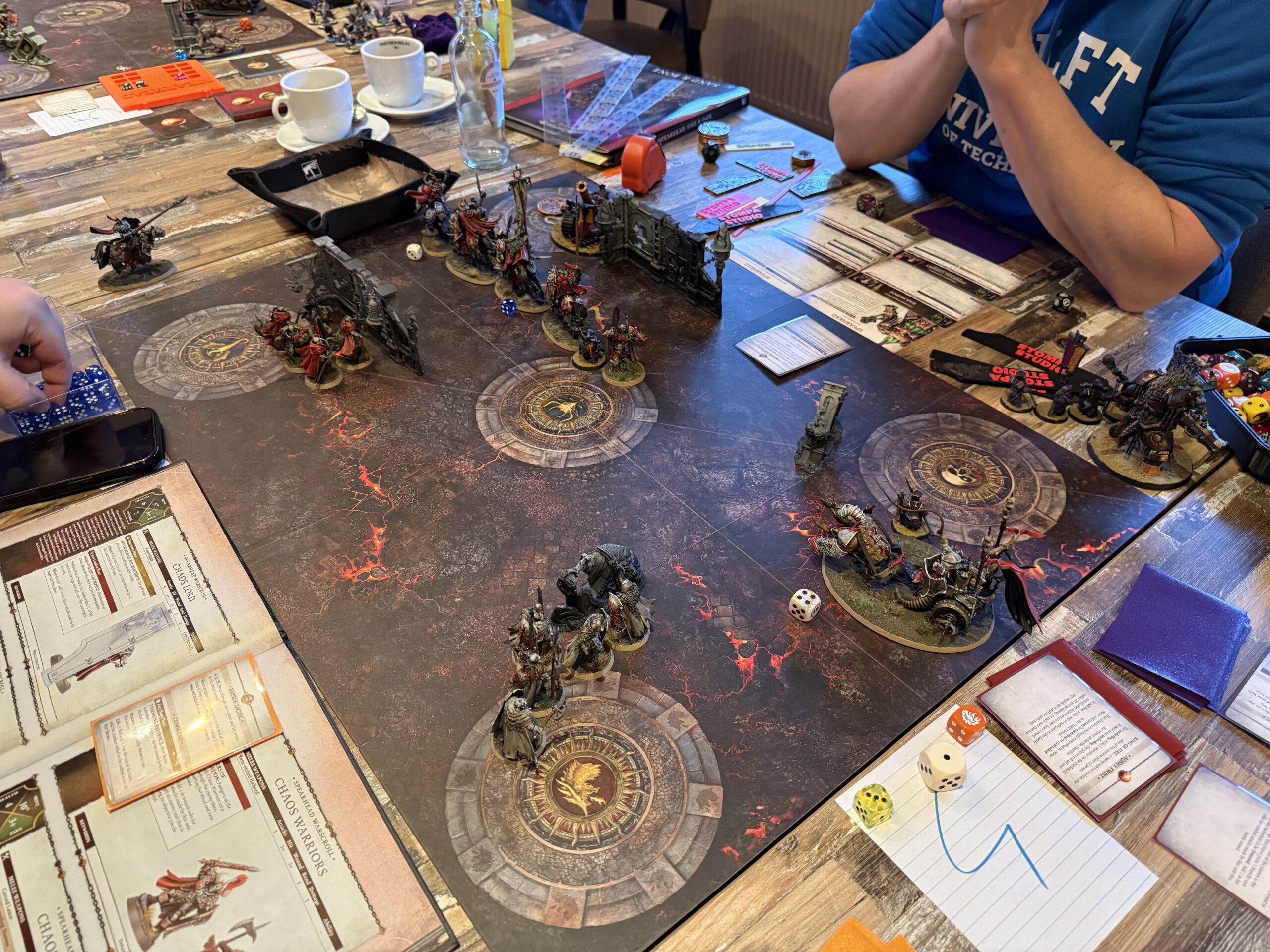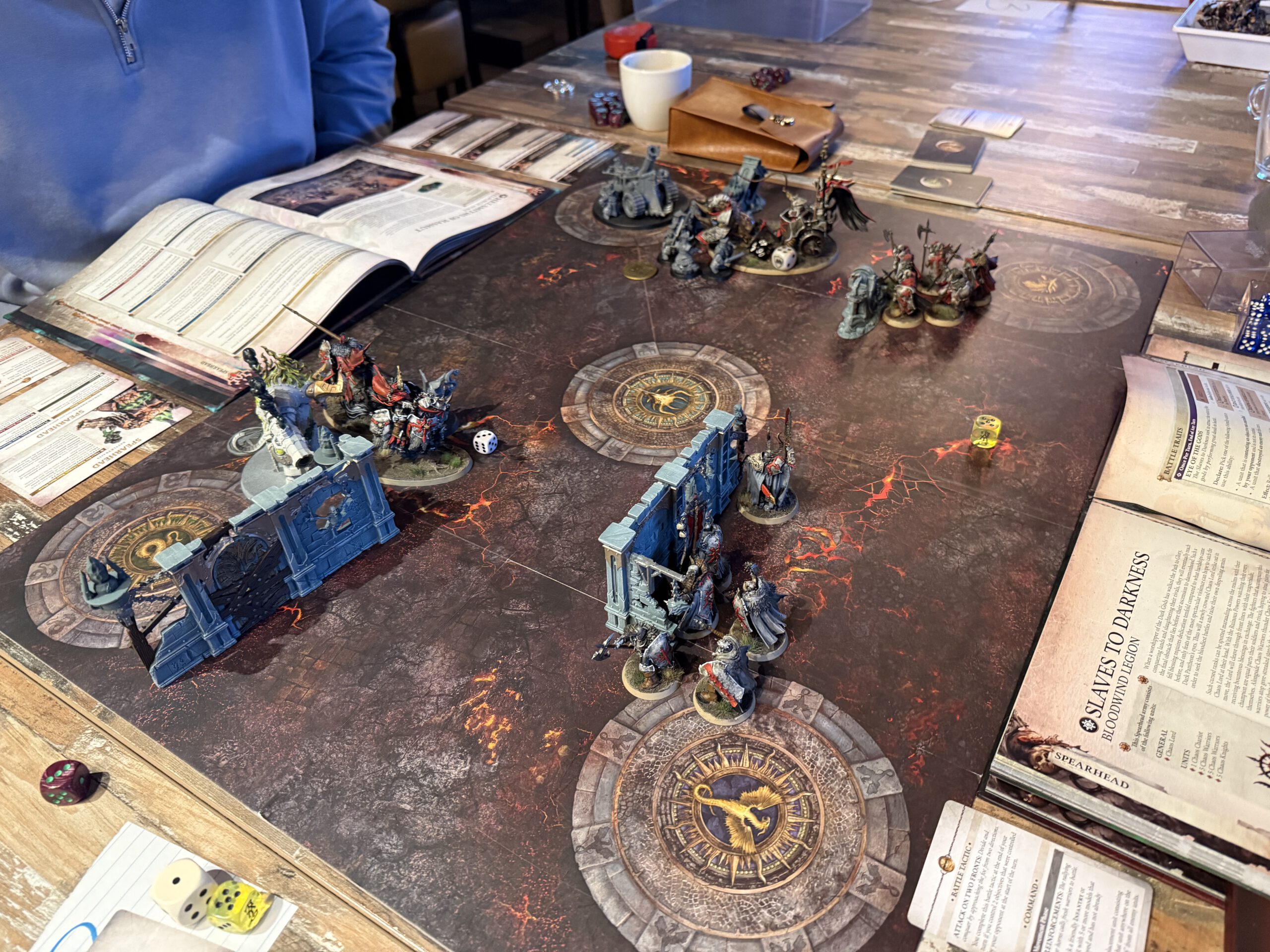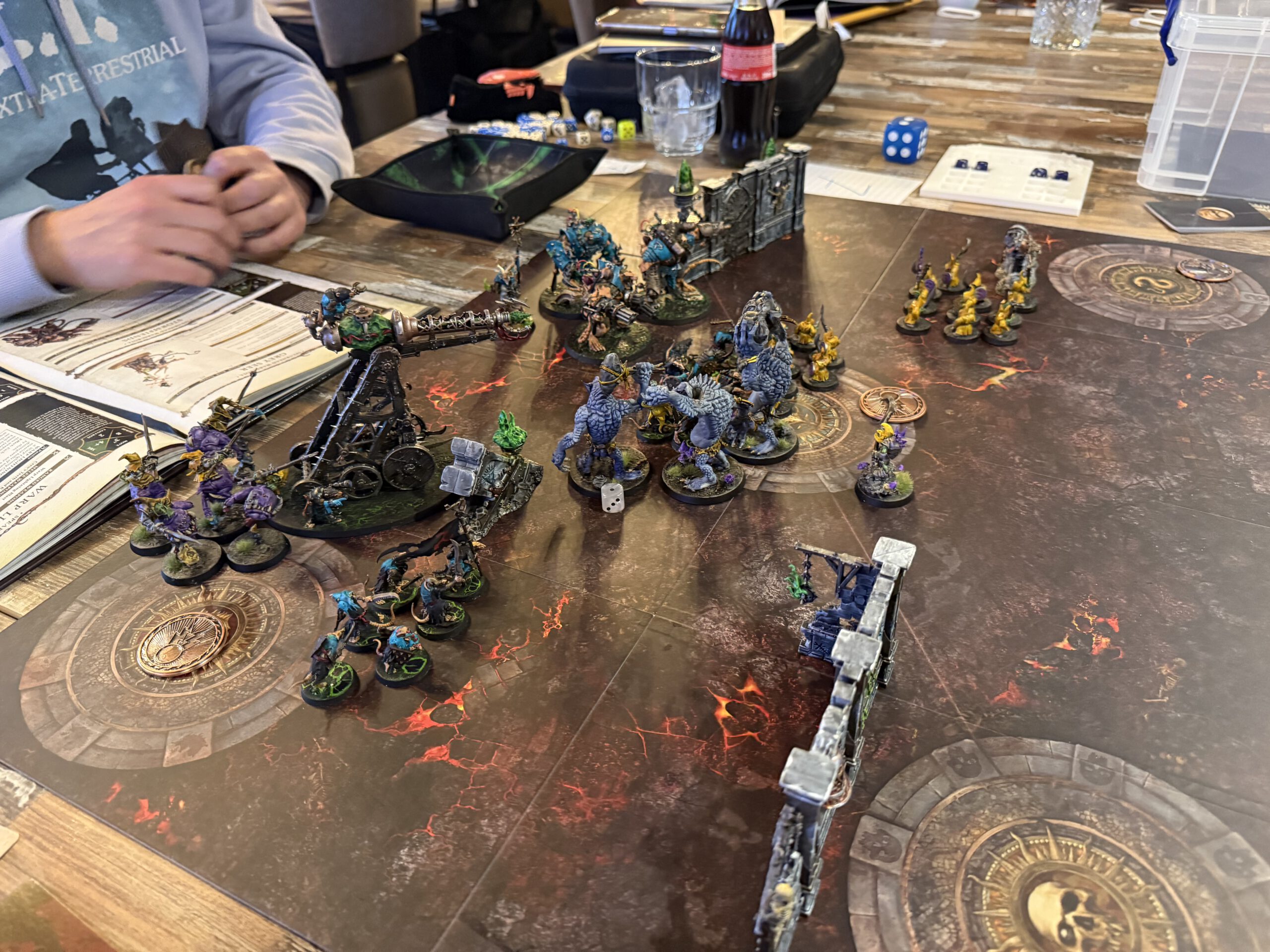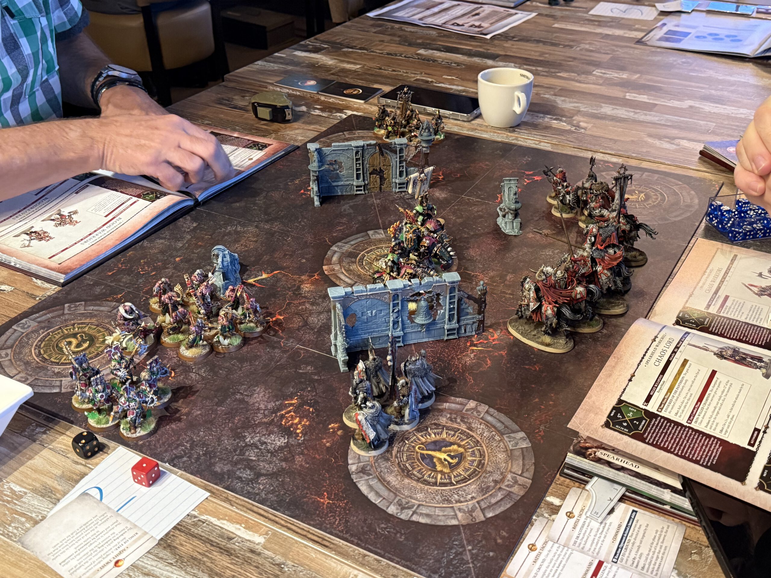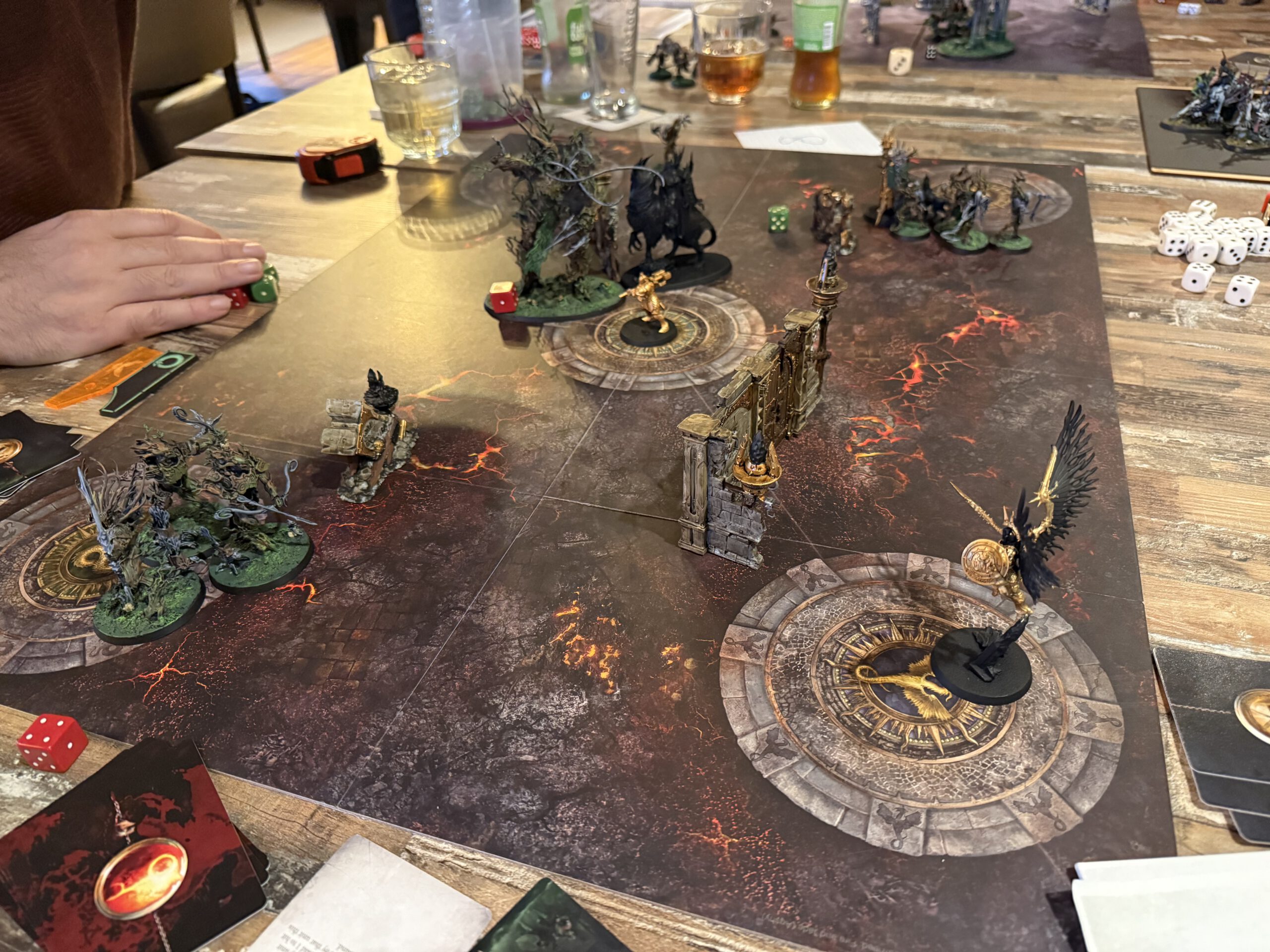 Tithefall, a crossroads of tribute in the Mortal Realms, erupted in flames as twenty spearheads descended to claim, protect, or destroy the tithes. Smoke curled over the streets, fire licked at walls, and the air itself seemed to shiver with anticipation.